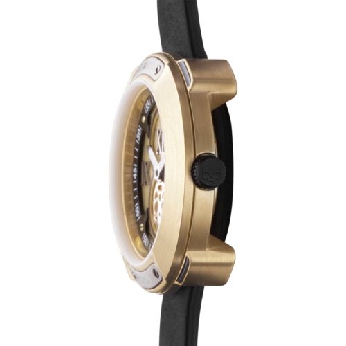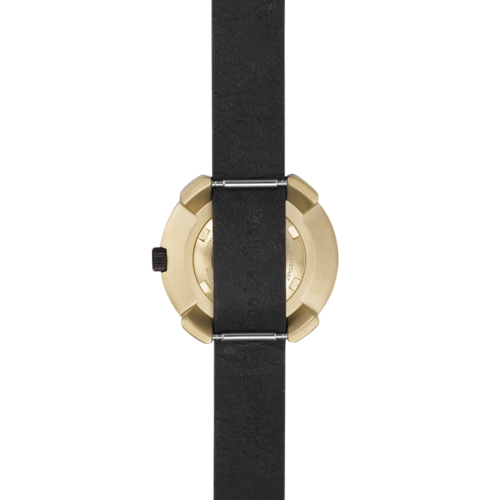 Not your everyday timepiece. The Vista adds a touch of elegance to your style with a gold case, a brushed light gold double layered dial with sport influenced markers and classic Roman numerals paired with an artisanal black leather strap.